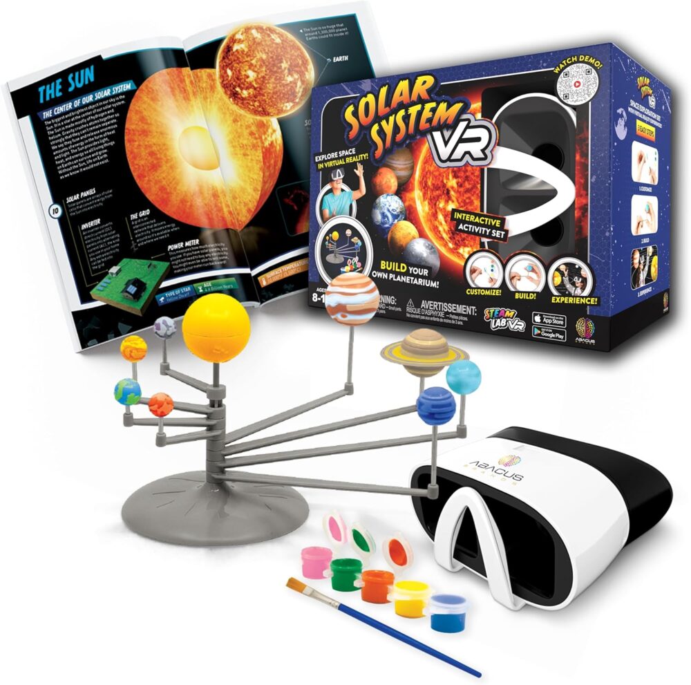 - WHAT’S IN THE BOX? This activity set includes 40-page-book, VR goggles, planetarium solar system model and all the materials you need to to foster learning through play.