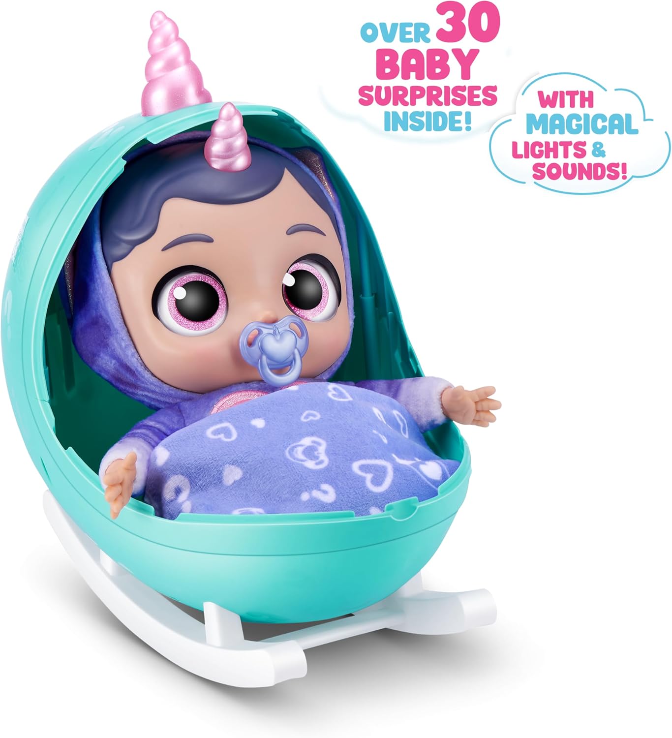 The Babycorns have arrived and can’t wait to play! Unbox the magical Rainbocorn babies, nestled inside their magical cribs. You’ll find over 30 surprises, including a pacifier, heartwarming storybook and plush boo-boocorn. Watch your Babycorn come alive with magical lights and sounds.