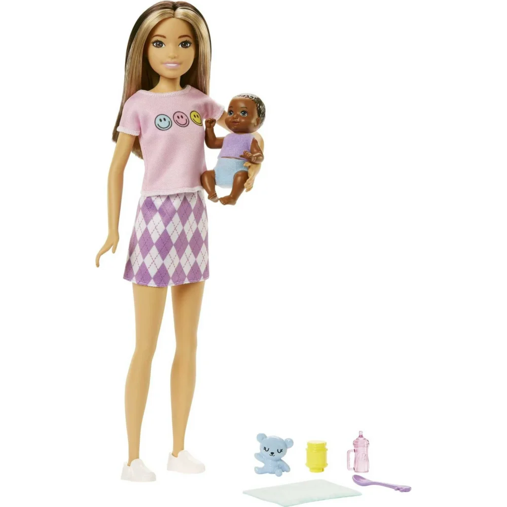 - This Skipper babysitter doll is ready for anything with a bottle, spoon, baby food jar, teddy bear, blanket and adorable baby doll to care for