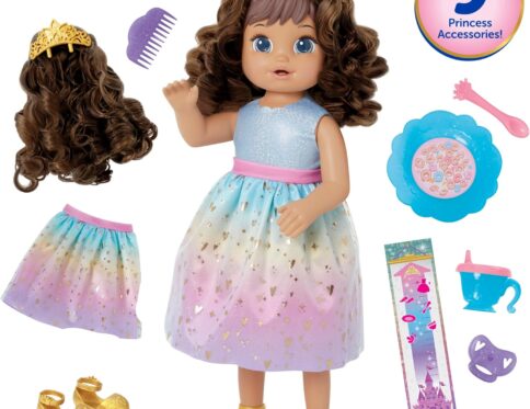 There are 3 reversible foods for a total of 6 delectable dishes. Kids can enjoy all their favorites: chicken nuggets, macaroni and cheese, nachos, pizza, cake and pie. And surprise!—the center of each dish is a miniature portion just the right size for Barbie! A built-in dining area with table and booth is sized to fit Barbie and friends. There’s even a doorway so Barbie can join in on the cooking.