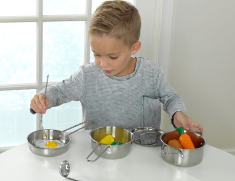 - Sink and faucet for realistic play; click-and-turn knob helps promote hands-on, fine motor skill development