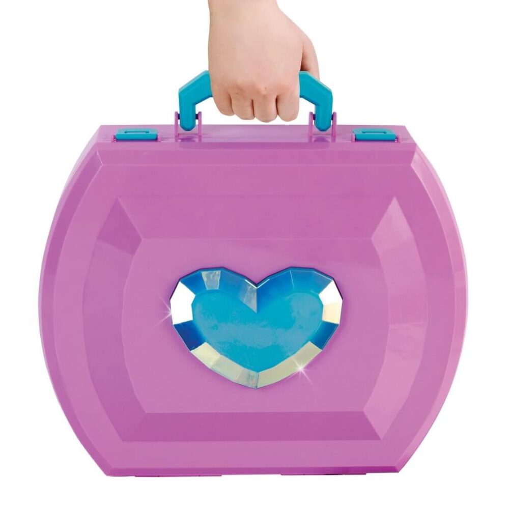 This glam heart-shaped case features an illuminated mirror and all the fun dress-up cosmetics needed to create bright, picture-perfect manis and matching makeup looks.
