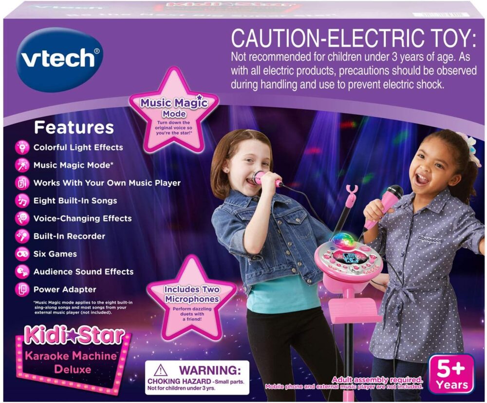 - Use the built-in recorder to record yourself for up to 5 minutes. Includes two microphones and an AC adaptor so you can sing all day with a friend.